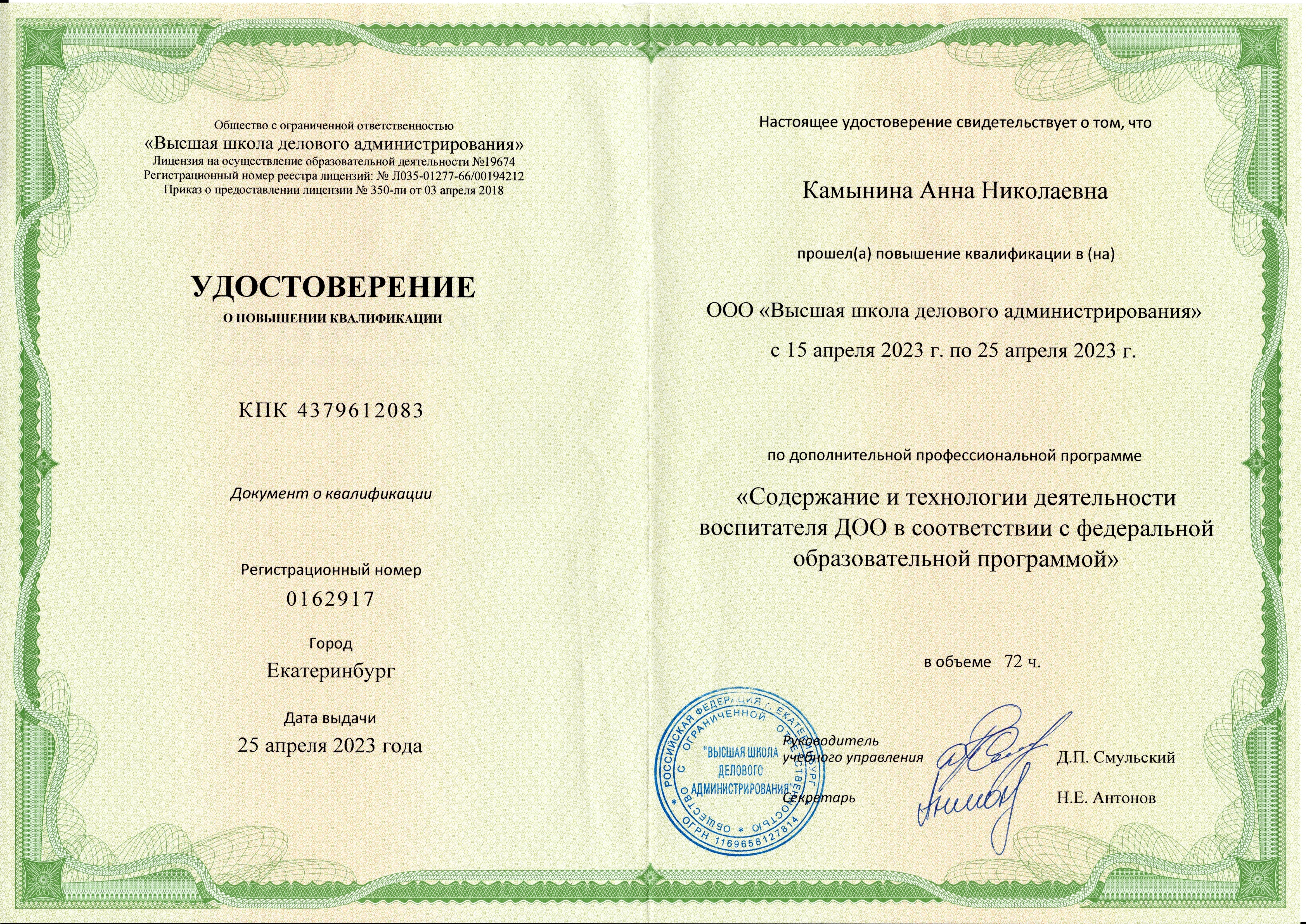 ( ООО "Высшая школа делового администрирования" . 72 ч.,часов. Форма обучения: Онлайн.).