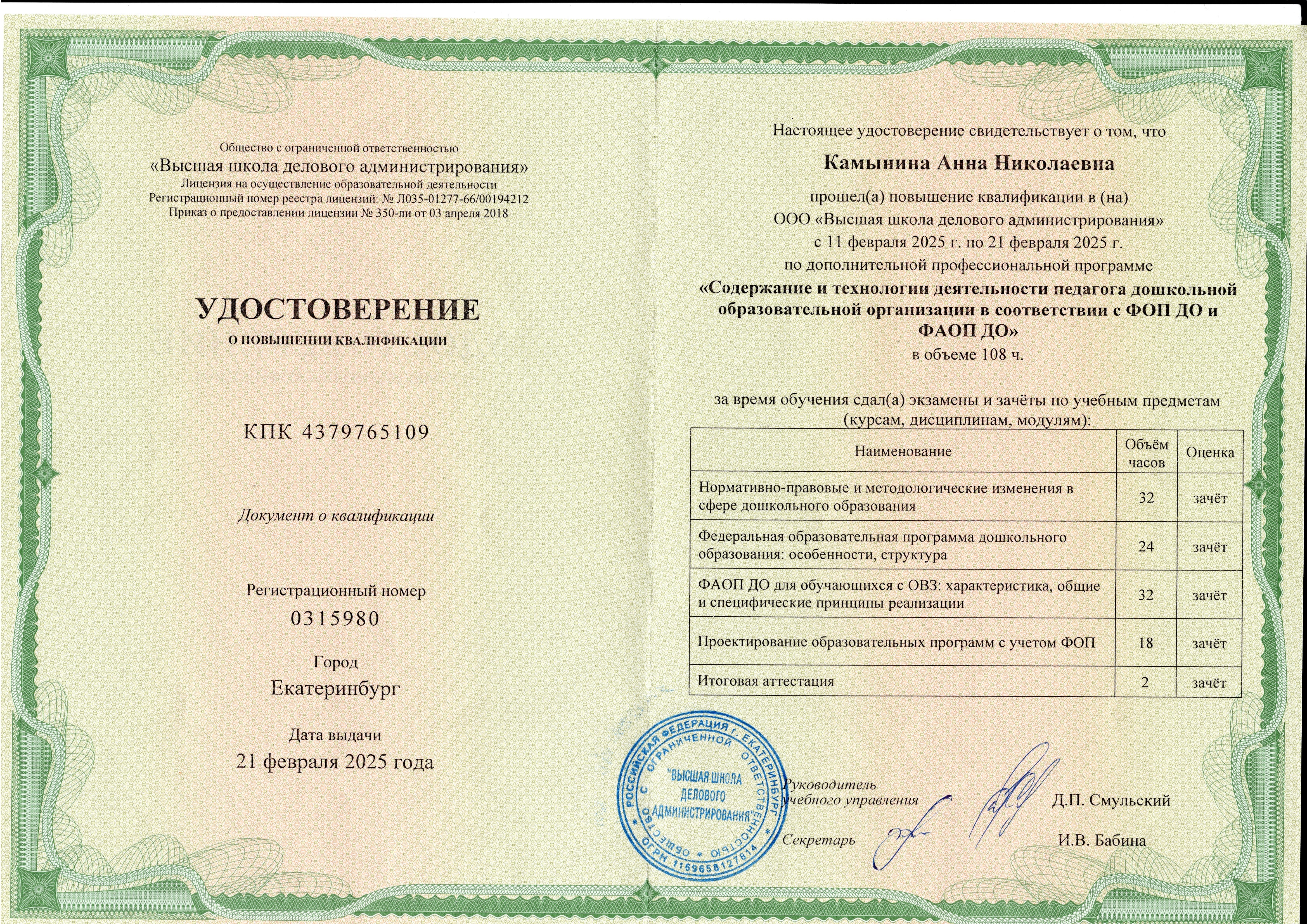 (ООО "Высшая школа делового администрирования" . 108 ччасов. Форма обучения: Онлайн.).